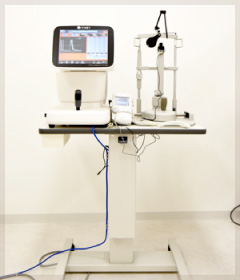 医師が眼の状態をくまなく確認するための、眼科の診察用顕微鏡です。眼の前面の涙や角膜の状態から、後面の網膜の状態まで広く観察できます。