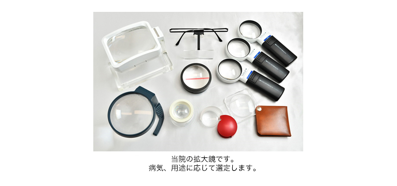 ロービジョンケアの効果を高めるために、近視や遠視、乱視がある場合、眼鏡やコンタクトレンズなどでしっかり矯正することが原則です。そうしないと、拡大鏡を使っても網膜に写るのは、ぼやけたまま大きくなった像なので、効果が半減してしまいます。
