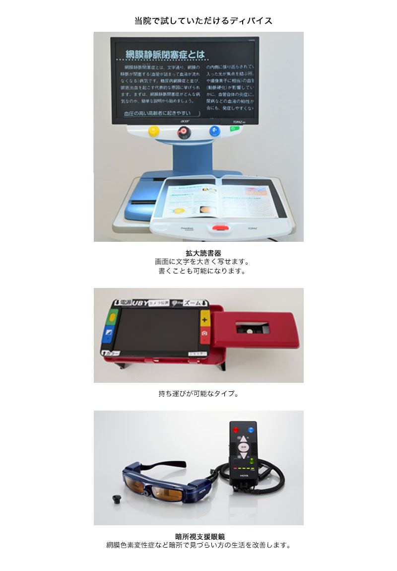 加齢黄斑変性、黄斑ジストロフィーなどで中心視力が低下した方にはとても有効です。