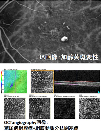 さらに、当クリニックでは、造影剤を使わなくても網膜血管像が描出できる、患者様にやさしい、OCTangiographyを導入しています。
